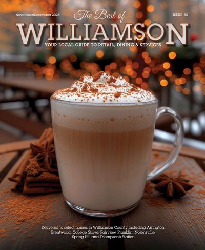 The Best of Williamson advertising magazine is distributed to single-family homes in Arrington, Brentwood, College Grove, Fairview, Franklin, Nolensville, Spring Hill and Thompson's Station.